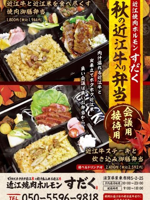 近江牛と近江米を食べ尽くす 焼肉御膳弁当 1,800円(税別)〜 近江牛のステーキと炊き込みご飯弁当 2,400円(税別)〜