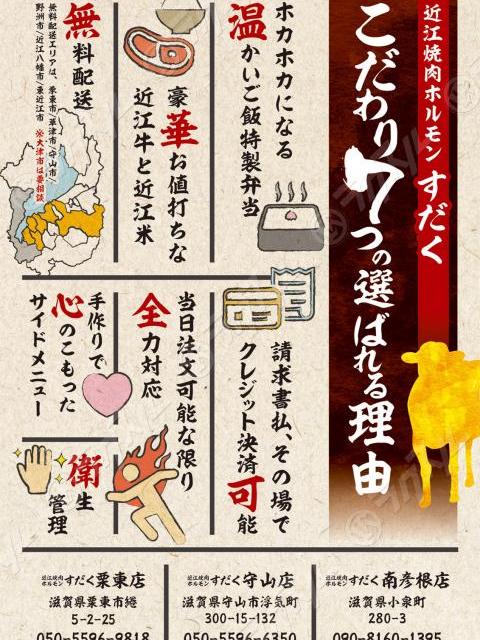 掲載中のメニューや料金は、予告なく変更される場合もございますので、ご注文の前に、各店舗へ直接お問い合わせいただきますようお願いいたします。